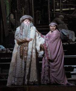Fabiano, another Met role debut, was ideally cast as the resolute, riddle-solving prince, totally conveying his character’s unguarded infatuation. Ardent and attractive in his pursuit of the unattainable princess, his clean, large-voiced tenor was uncommonly tender in his “Non piangere, Liù” and pure gold in the long, sweeping lines of “Nessun dorma”.