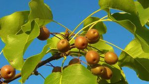 The wildly invasive tree Bradford pear was already on the property, but it makes an excellent root stock for Asian and European pears! The graft results in easy, trouble-free pear trees, fruiting the very next year.