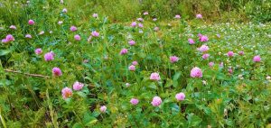 He’s found that white clover is perfect for paths because it can take mowing – while at the same time fixing lots of nitrogen. The taller red clover is also great at improving soil and is grown in unmown parts of the garden.